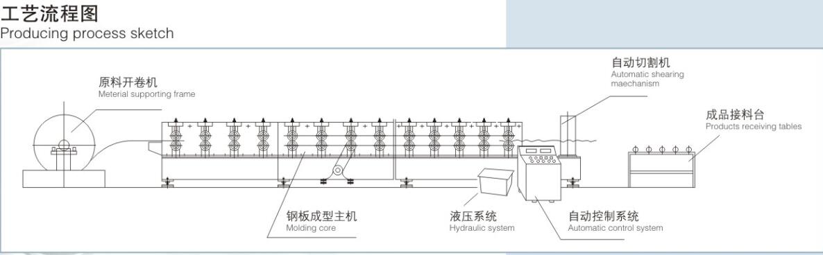 該機(jī)生產(chǎn)的鋼樓承板形狀簡(jiǎn)潔、波度大、強(qiáng)度高、安裝時(shí)鋪置點(diǎn)焊鋼筋網(wǎng)后與混凝土現(xiàn)場(chǎng)澆灌結(jié)合,粘合性好。在高層建筑上既可以省去鋼模板又可以減輕樓層承載,在達(dá)到同等承受能力的前提下,使工程用鋼量減少,從節(jié)省投資。