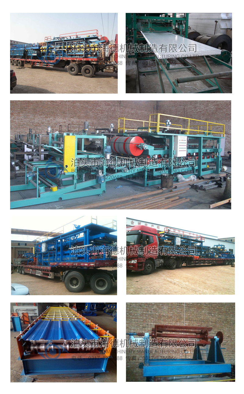 全套流水線放料機構(gòu)、壓型機構(gòu)(壓筋、涂膠、加溫、復合、卷邊、開槽、整邊、氣動、自動切割)組成,是生產(chǎn)工業(yè)廠房、倉庫等屋面板和墻板不可缺少的設備。