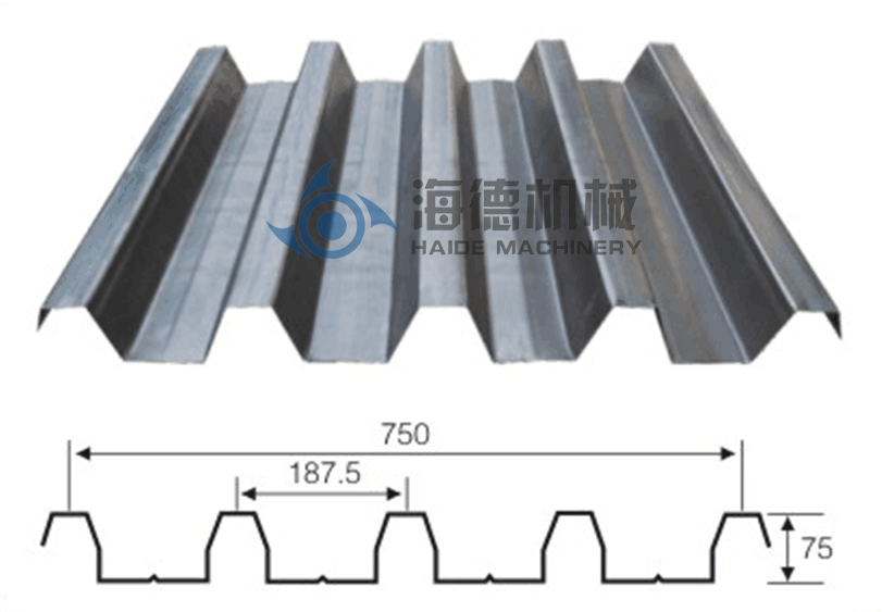 該機(jī)生產(chǎn)的樓承鋼板,用于樓層樓面板,具有波峰高、強(qiáng)度大等特點(diǎn),而且生產(chǎn)自動(dòng)化程度高,成本低廉。